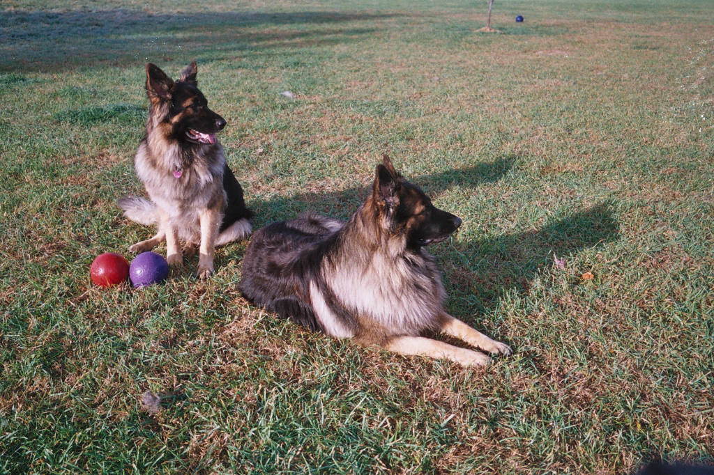 Atlas and Magnum are currently our two male dogs, both our boys are Champion title holders and love to show in the ring. But they are at their best at home playing in the fields. We also have just built a new enclosed play area for all our kings. This area is kept as natural as possible with shade trees inside and out, and a small pine building was built on one side for the kings to have a covered place to get up off the ground and relax on their hammock beds for a nice quiet nap. |